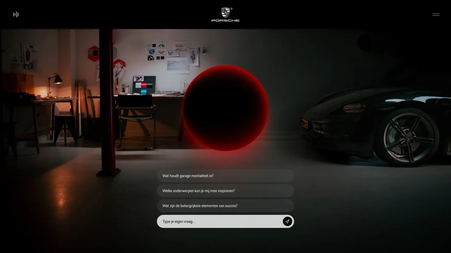 We fuelled Porsche’s drive into empowering gestures, centring around the ‘Garage Mentality.’ Starting with an online and social video campaign, we called on entrepreneurs to (re)discover their inner fire. We launched an online AI-powered platform to answer questions on entrepreneurship, training it with advice from local Dutch entrepreneurs.